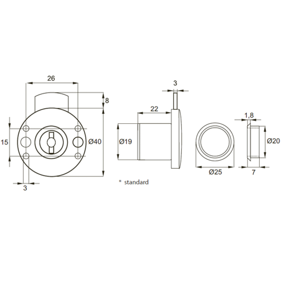 Zamek meblowy nawierzchniowy okrągły SISO